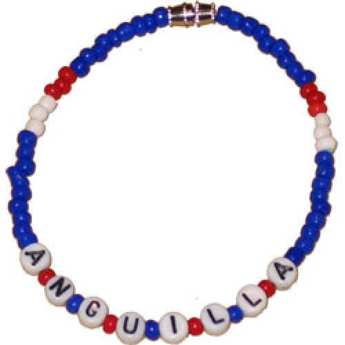 Buy this beaded bracelet of the colors and words of Anguilla.