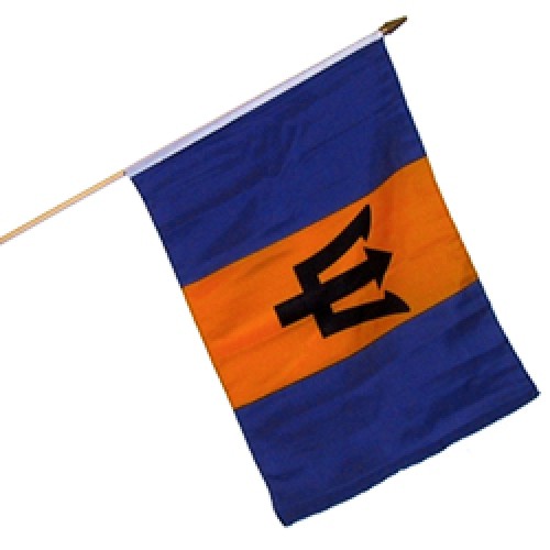• Barbados 12  X 18 inches polyester flag w/ 24 inch stick
