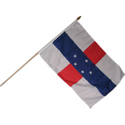 This 100% Polyester flag is approximately 18 inches X 12 inches and comes attached to a 24 inch stick with a gold spear tip. The flag sometimes can be removed and is great for any occassion.