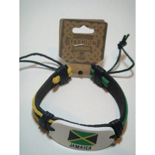 Represent Jamaica with this leather bracelet perfect match for your denim outfits. It's a leather cord bracelet with a Jamaica flag in the center.