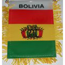 Buy the Bolivia flag mini banner. The size if 4X5 inches and comes with gold frills a suction cup for hanging from most smooth surfaces.