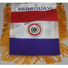 Buy the Paraguay flag mini banner. The size if 4X5 inches and comes with gold frills a suction cup for hanging from most smooth surfaces.