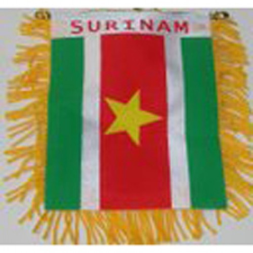 Buy the Suriname flag mini banner. The size if 4X5 inches and comes with gold frills a suction cup for hanging from most smooth surfaces.