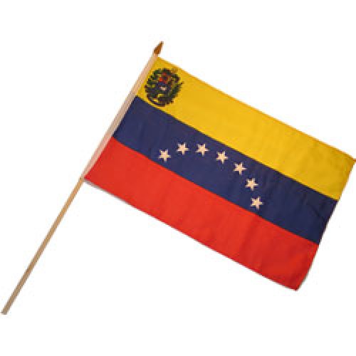 This 100% Polyester flag is approximately 18 inches X 12 inches and comes attached to a 24 inch stick with a gold spear tip. The flag sometimes can be removed and is great for any occasion.